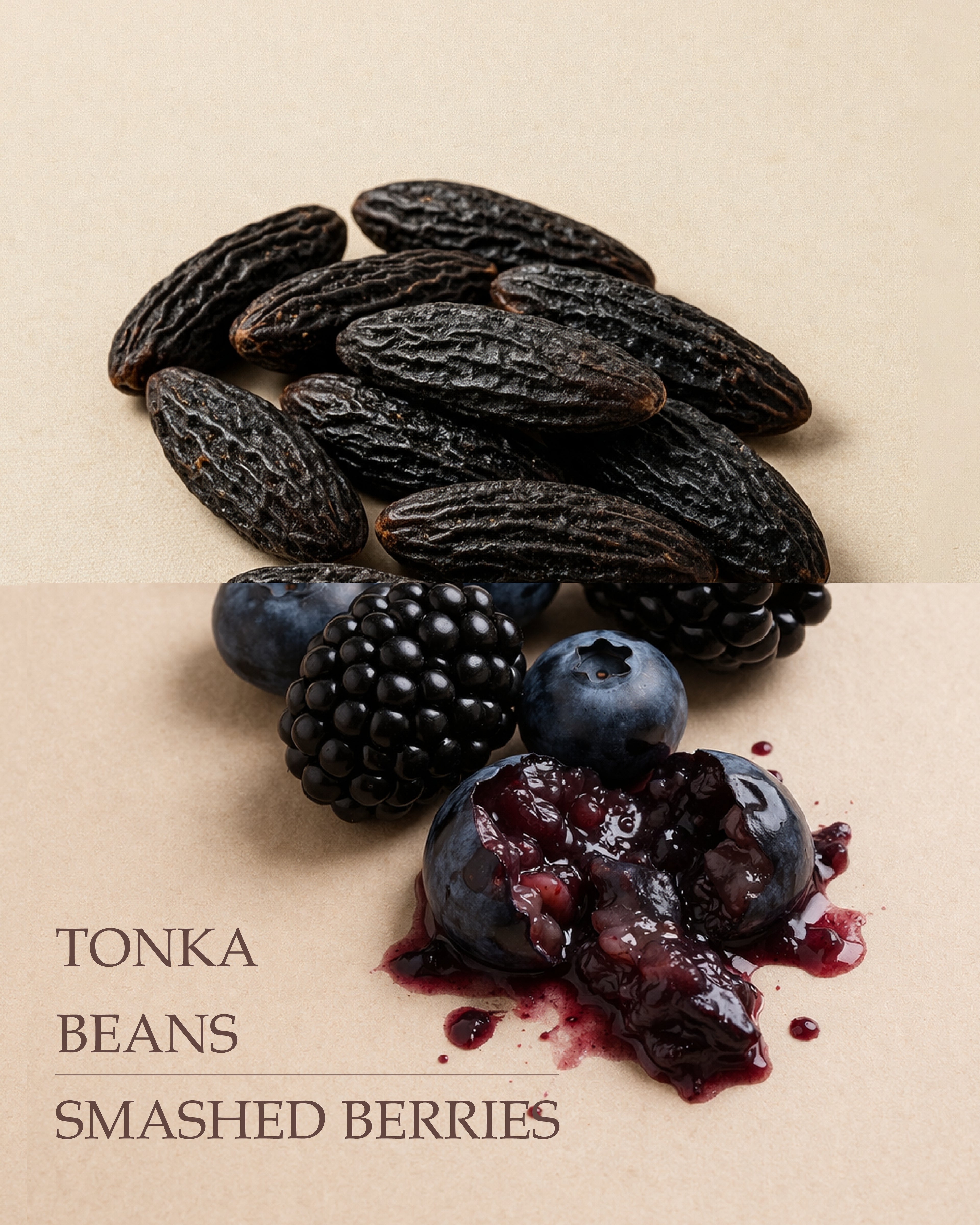 Musk og amber afrunder duften med en varm og vedvarende base, hvor tonkabønnens sødme smelter sammen med de mørke bær.